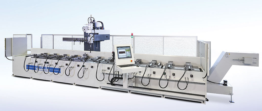 Bohrmax Z 40 mit 8 Stück hydraulischen Schraubstöcken und Pendelbetrieb